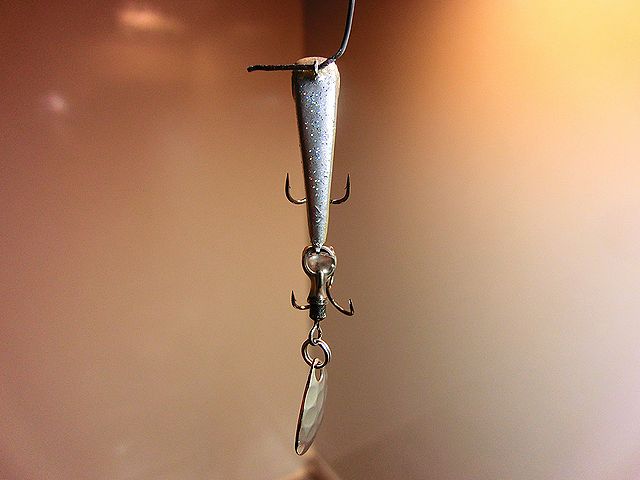 再び、平グミ型錘を半分に切断し、スピンテールジグを作成してみました。