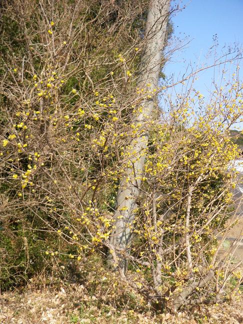 三ヶ根山の麓で1本だけロウバイを見つけました。