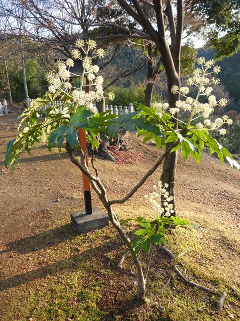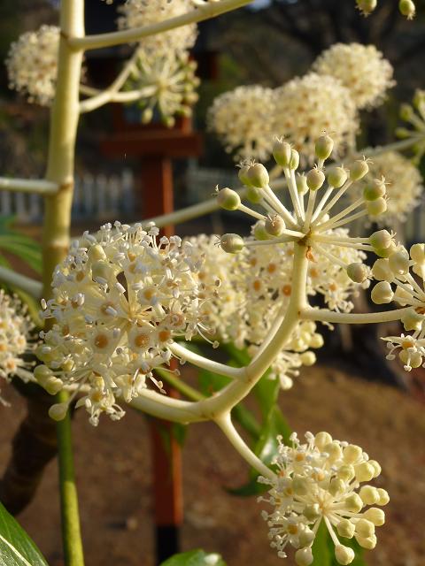 寂光院の境内で花を咲かせていた、ヤツデです。