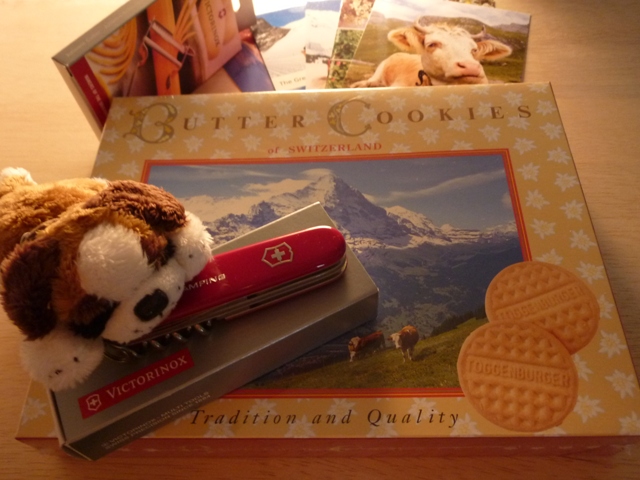 なんでもスイスに行って来たそうで、クッキーや絵葉書やセントバーナードのぬいぐるみの他に、ビクトリノックスのナイフやピーラーまで送ってくれました。