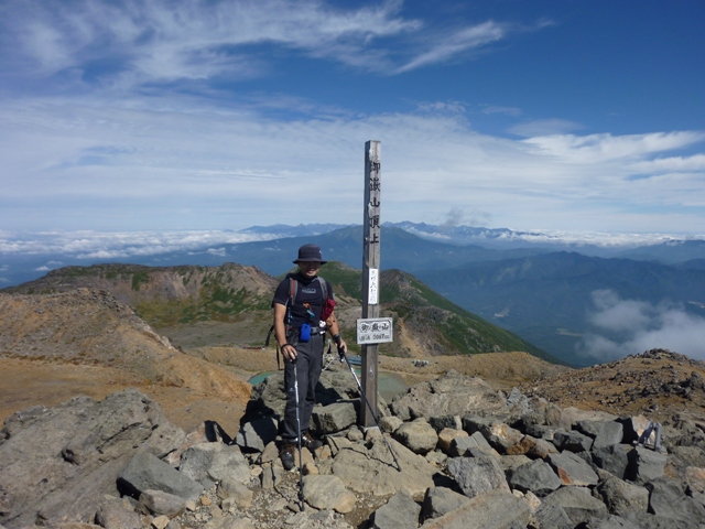 展望が素晴らしく、北側には乗鞍岳の向こうに穂高連峰や北アルプスが遠望でき、南東側には中央アルプスや南アルプスの向こうに富士山の頭が顔を覗かせていました!