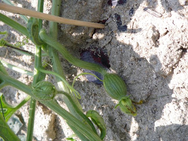 昼過ぎに仕事が終わり、昨日スイカ畑で人工授粉した雌花が気になって畑に寄って確認して来ました。