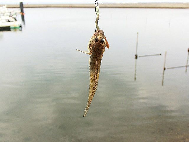 このワームは細いので、どの様に針に付ければよいのか分かりませんでしたが、とりあえず手持ちのジグヘッドに付けて投げてみたところ、ハゼが反応してくれました。