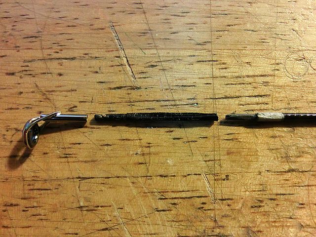 写真1:先端ガイド端から2cmの部位で破折しました。