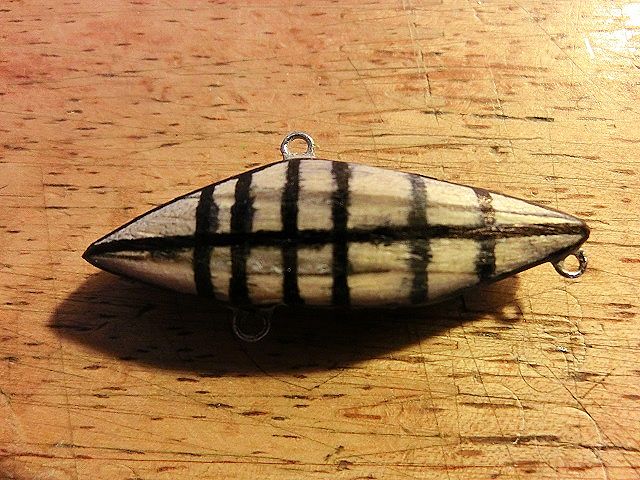 頭部の大きさは前作と同じとし、胴体を切り詰めた形にしたのですが、前後のバランスが整い過ぎてしまい、試し泳ぎをしてみると、ほとんど揺れないルアーとなってしまいました。(^^;)
