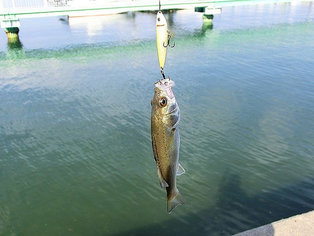 そこで、動かし方をいろいろと試していたところ、コッパが釣れました。