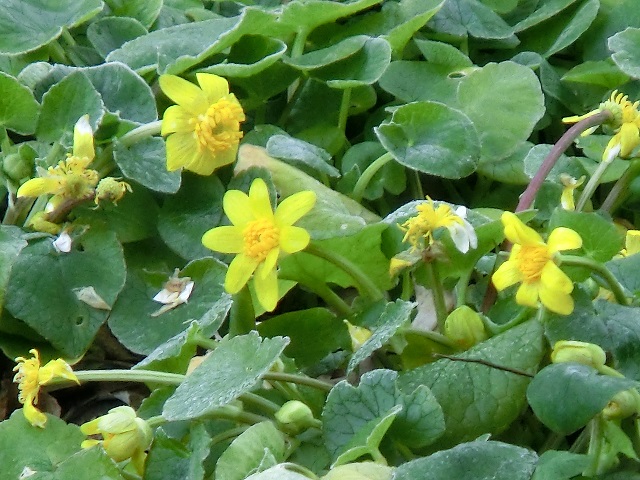 山野草園では、リュウキンカ?(ヒメリュウキンンカ?)が咲いていました。