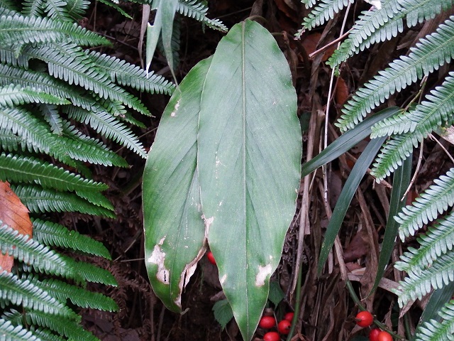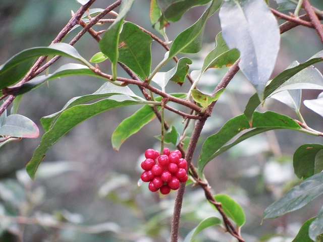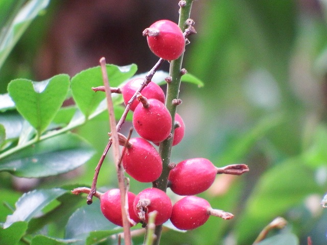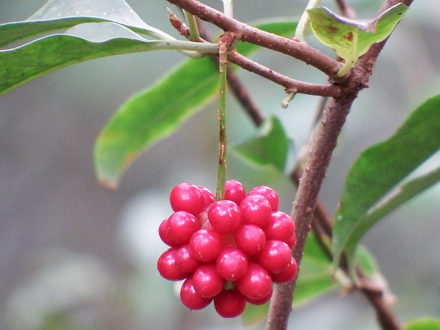 昨朝、公園内を散策している時に見かけた赤い実です。
