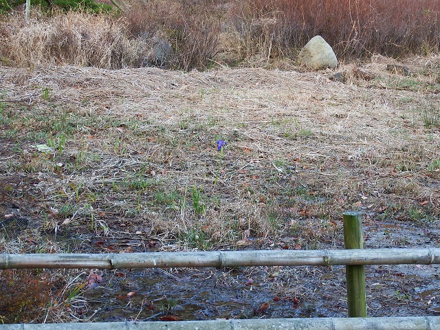 帰りがけに池の周りを歩いていると、冬枯れの景色の中に紫色の何かが目に入りました。