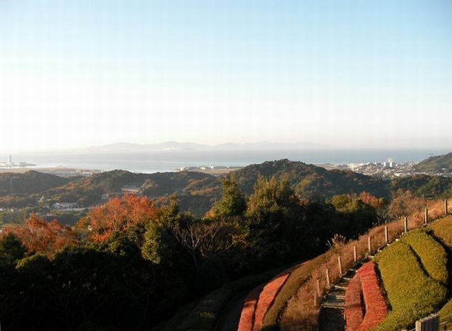 展望台から見渡す景色は、昨夜降った雨の影響で遠くの山々は見えませんでしたが、街には霧が横たわっており、朝日が高さを増すにつれて徐々に霧が晴れて行く様は幻想的な光景でした。
