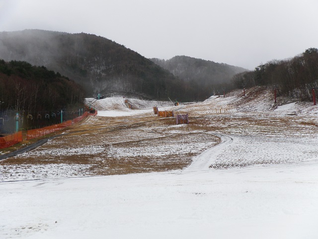 気温がなかなか下がりきらず、人工降雪もままならない状況の様でした。(T_T)