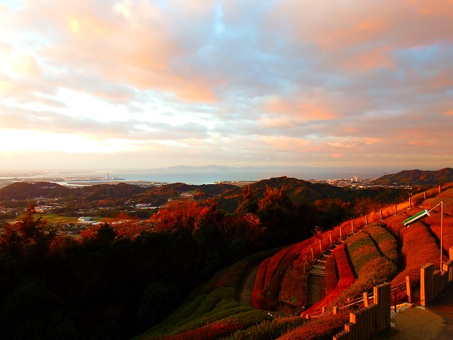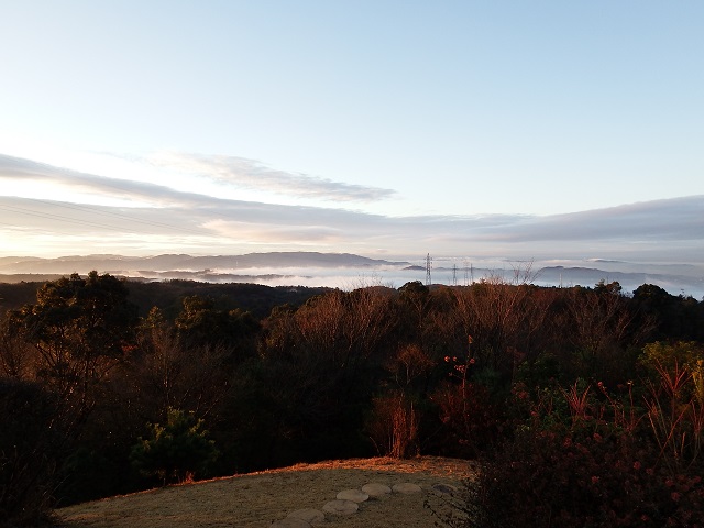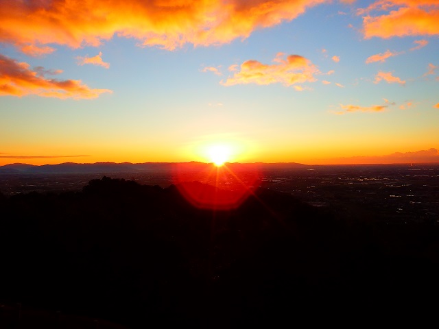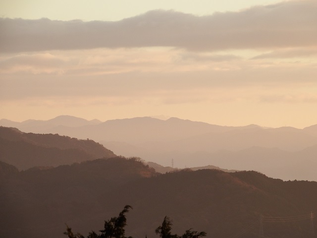 展望台へ上がると、ちょうど弓張山地越しに昇る朝日や、富士山頂を見ることが出来ました。