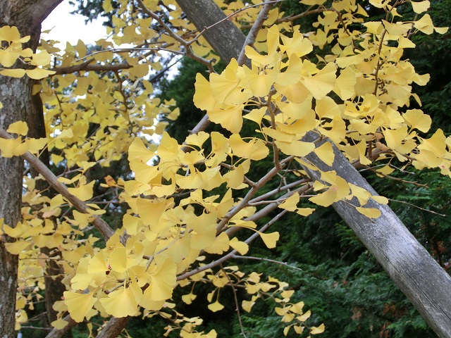 イチョウも緑色味が無くなり、すっかり黄色に染まっていました。