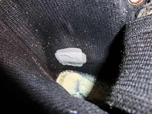 左右内踝部に擦り切れ 絆創膏を貼り修理
