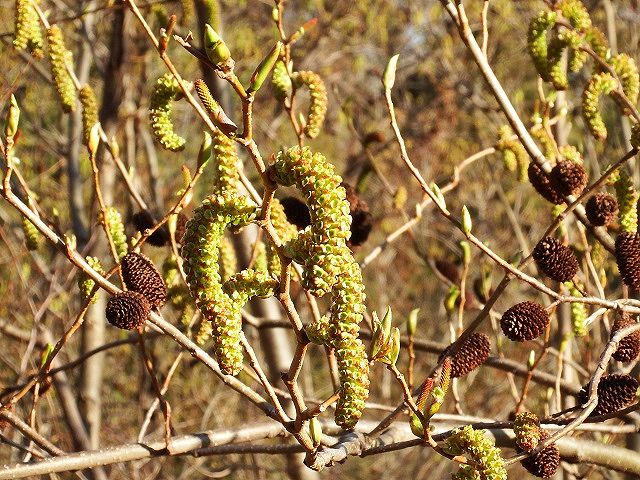 ※オオバヤシャブシは、枝の先から葉芽、雌花序、雄花序の順に並ぶそうです。