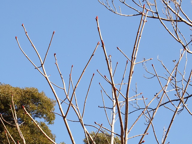 大きくて艶のある赤茶色の冬芽が印象的でした。