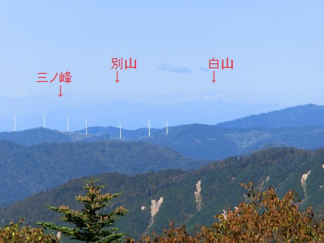 冬季の様に、クッキリとした遠望は得られませんでしたが、大船山の風車越しに冠雪した白山が遠望でき嬉しかったです。