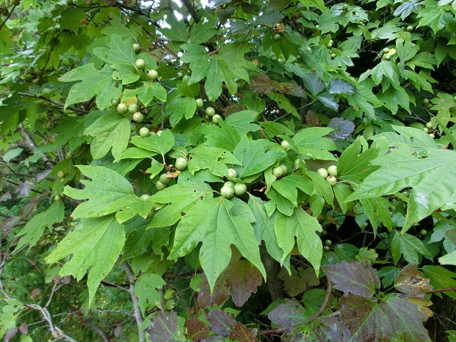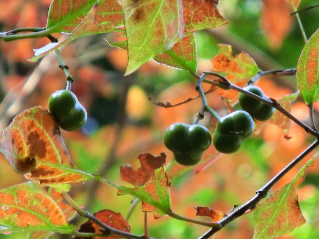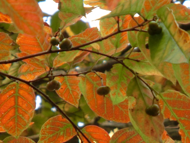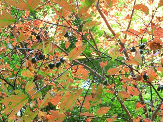 早くからから紅葉することで知られている木に、ハゼノキやヤマハゼやウルシがありますが、私がよく散策する里山では、まだ鮮やかに紅葉したこれらの木には出会えていません。
