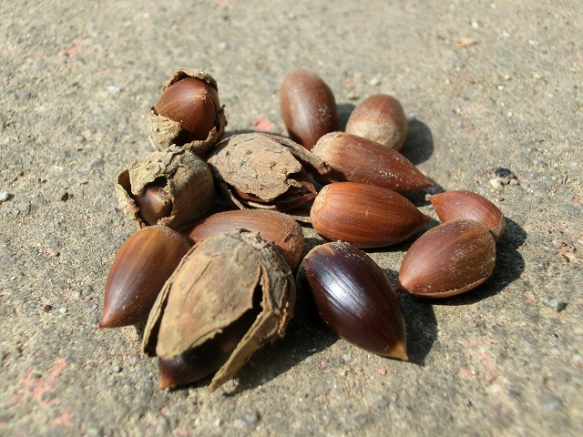 カシやマテバシイ、クヌギのドングリの他に、シイの実も拾うことが出来ました。