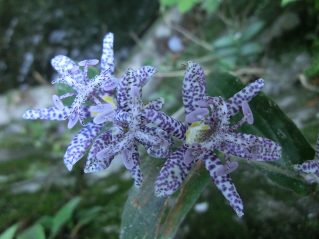 豊川側から上った際に見かけたヤマジノホトトギスかな?と思ったのですが、よく見てみると花柱に斑点が有り、花被片の基部に黄色の斑紋が認められたので、違う品種だと気づきました。