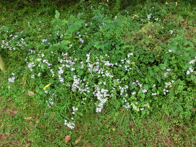 ※成虫のオスがよく集まる吸蜜植物の中に、日当たり良好な場所で見かけることが多いヒヨド