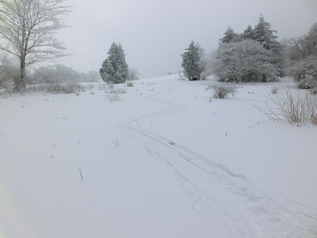 平野部は青空でしたが、本宮山麓~上津具~茶臼山高原道路では曇天となり、スキー場へ近づくと降雪しており、気温計はお昼だというのに-6℃を表示していました。