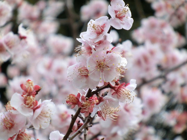 梅(白しだれ・豊後・紅しだれ)(上段)、河津桜(中段)、沈丁花(下段)です。