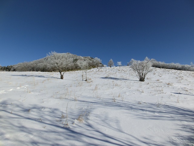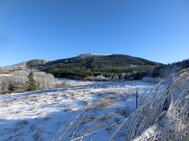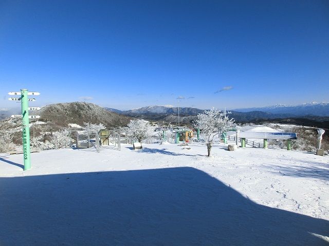 快晴の下、遠くに聳える雪山と霧氷の白さが青空に映え、とてもキレイでした。(^^♪