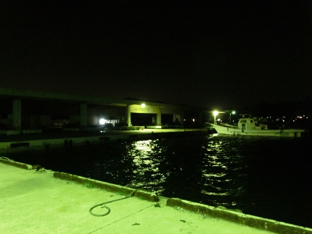 初めて釣りをする漁港だったので、取りあえず照明があり海面に明かりが揺らめく場所を選択し、岸際にルアーを落とし反応を探ったのですが、当たりを感じ取ることは出来ませんでした。