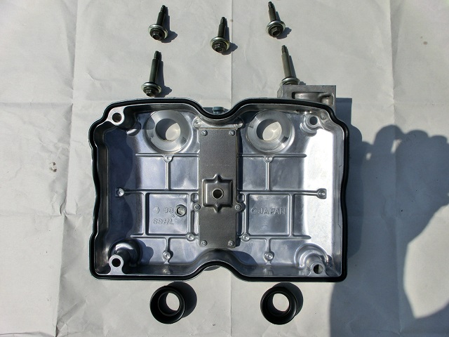 カバー清掃後 新調したパッキン類とワッシャー 組み付け完了