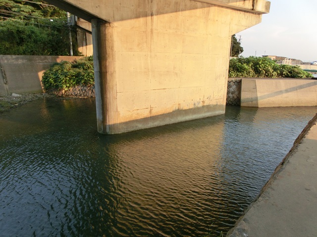 場所は、この様な用水路の河口で、満潮に近づくにつれ海水が入って来て、干潮時には川底が露出してしまう様な場所です。