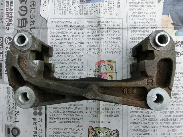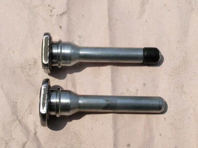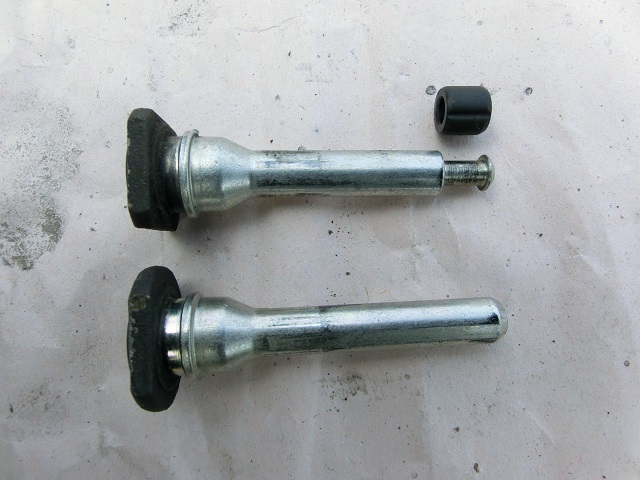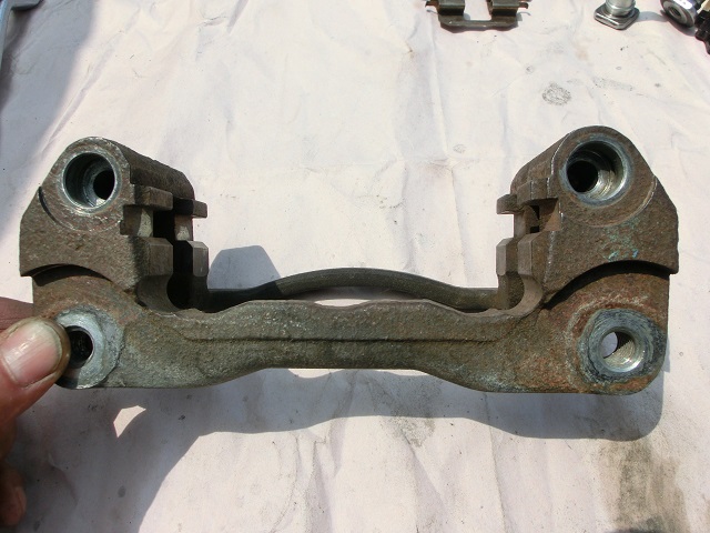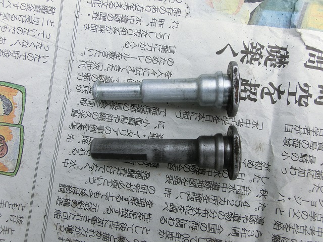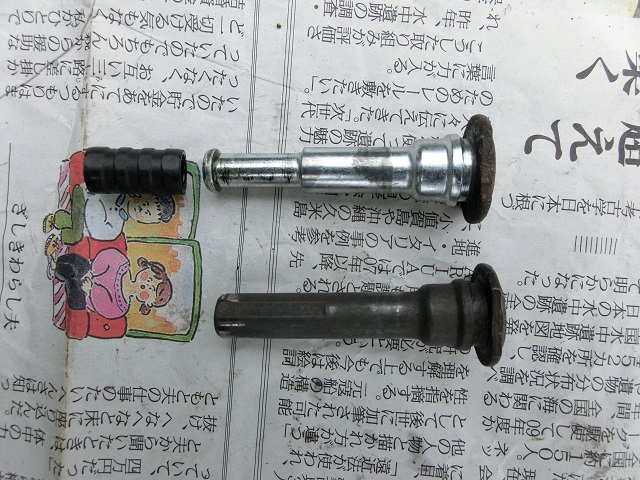 スライドピン(左写:研磨前、中写:研磨後)とキャリパーサポート(右写)です。