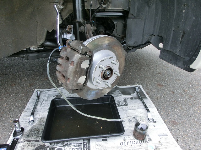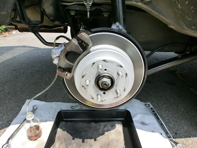 ブレーキフルードのエア抜き作業です。