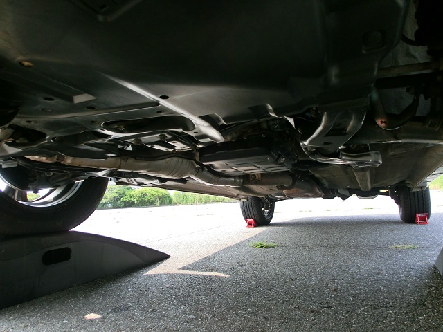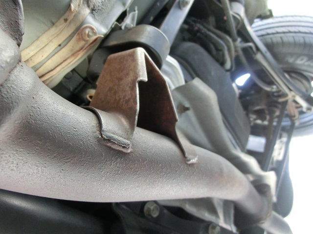 経年変化が悲しい下周り フロントパイプ遮熱板 センターパイプステー
