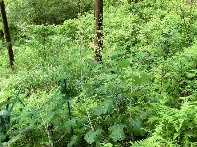 大きな葉と真っ直ぐ上方へ伸びる茎が特徴的な植物が目に留まりました。