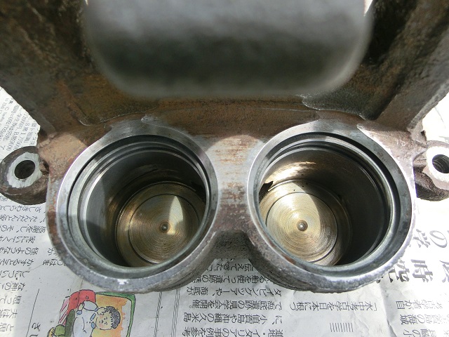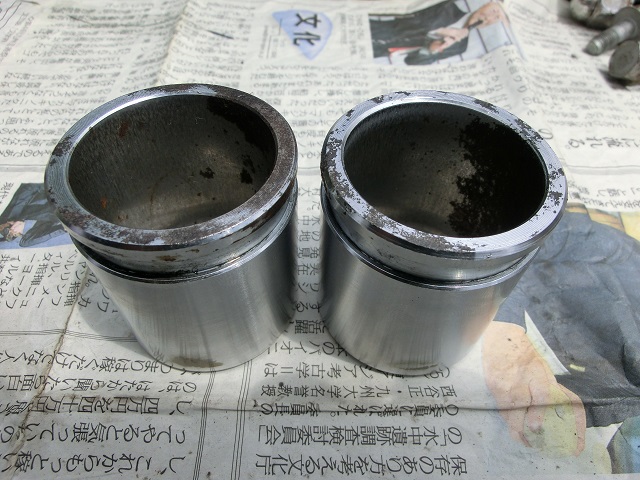 ピストンは、ダストブーツとの嵌合部から外側には錆がありますが、内側は大丈夫でした。