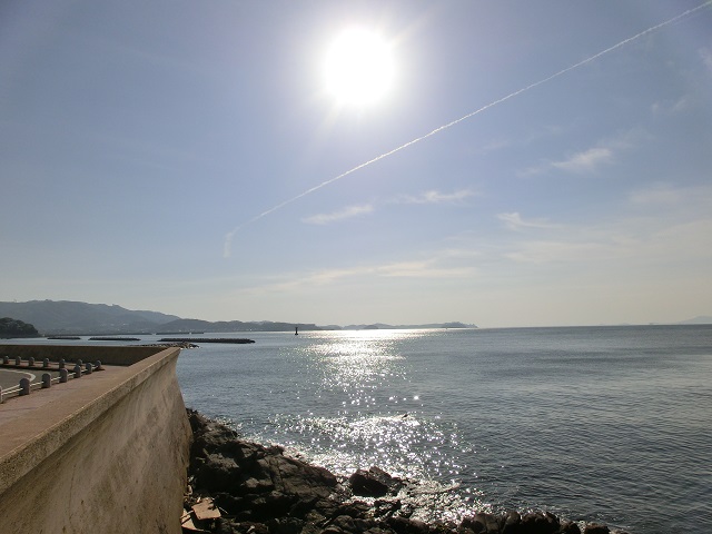 日曜ですが漁船が操業し、プレジャーボートや水上バイクが勢いよく航行し、様々なヨットも出廷しており、それぞれの引き波が影響し合い複雑に大きくなった波に遭遇する場面もあり、西浦に近づくほど少し忙しない印象でした。