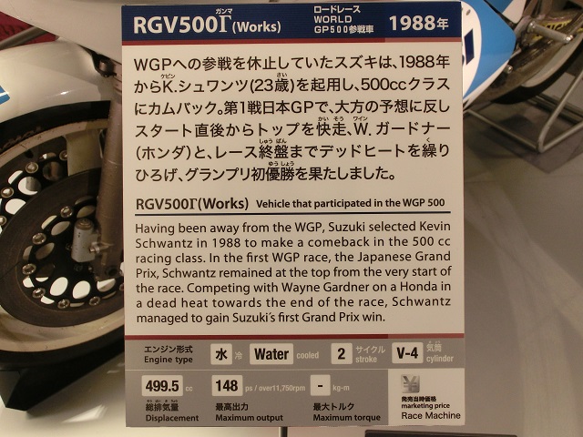 下段写は、ケビンシュワンツが乗りworld GPで戦ったRGVΓ500(88')です。