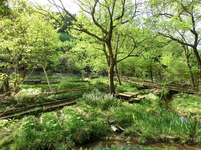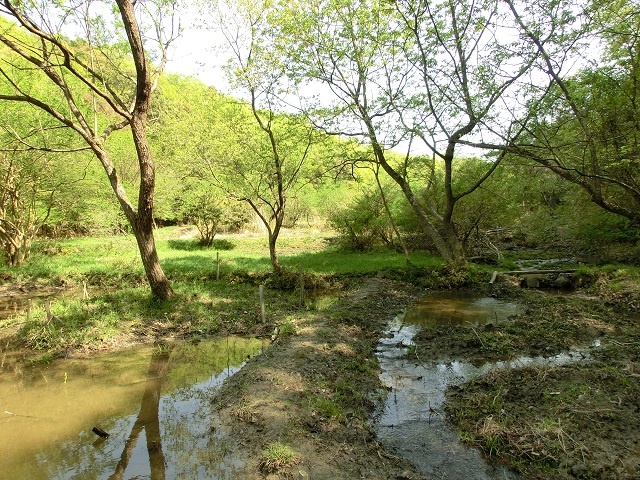 継続して藪が切り開かれ続けているのですが、小川の流れる範囲が拡張・整備され、昨春よりも散歩出来る範囲が広がり、更に雰囲気がよい場所に変化していました。