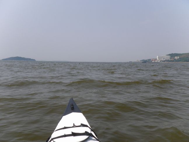 残念ながら海水は濁り、赤潮が発生していましたが、漕ぎ始めは穏やかな海況でした。