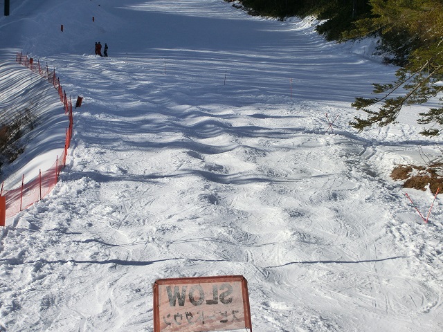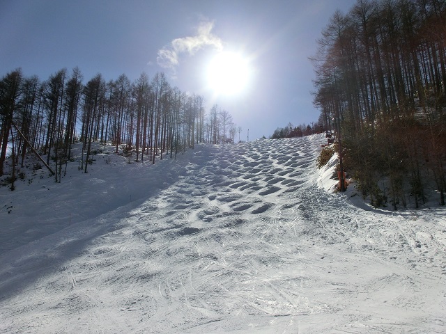 前回来た時は、素晴らしいコースコンディションで、とても気持ちよく滑れたのですが、今回は体も心も重く・・・(>_<)