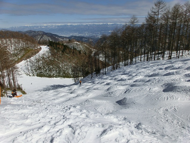 パノラマコース下部にある「みんコブ」(中段写)は、私には難しくて全く滑れませんでした。(T_T)
