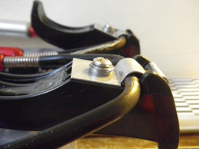 道具箱に入っていた、0.5mm厚のアルミプレートと、4M・0.8mm厚のワッシャーと、ネジ頭を切除した5Mネジ(2.2cm)を使用して作成してみました。