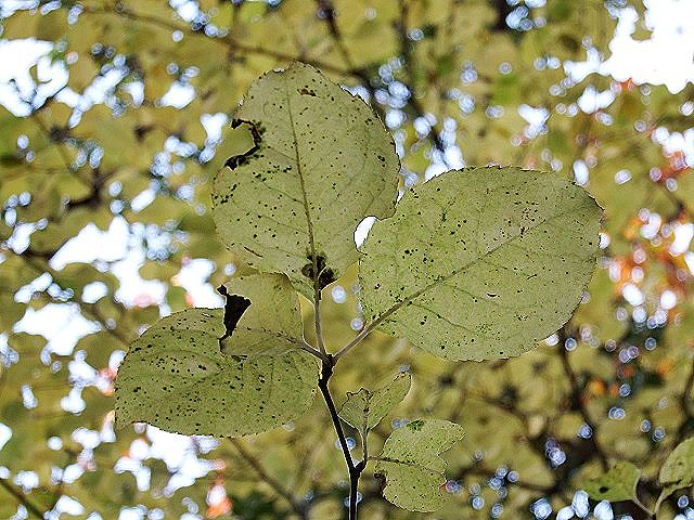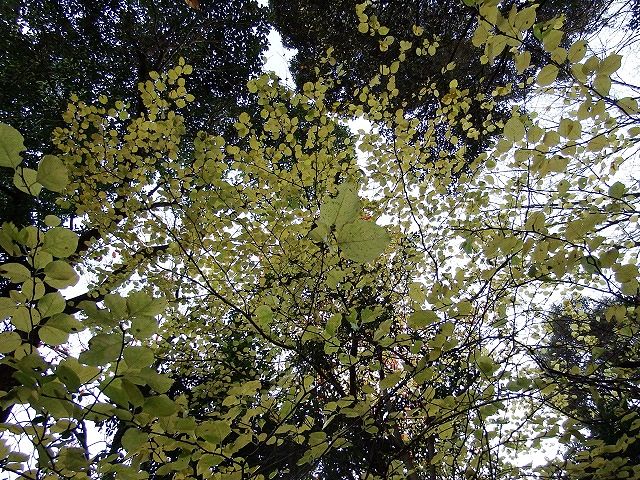 そんな中、長さ5cm程度の丸みのある葉が印象的な樹の黄葉が目に留まりました。