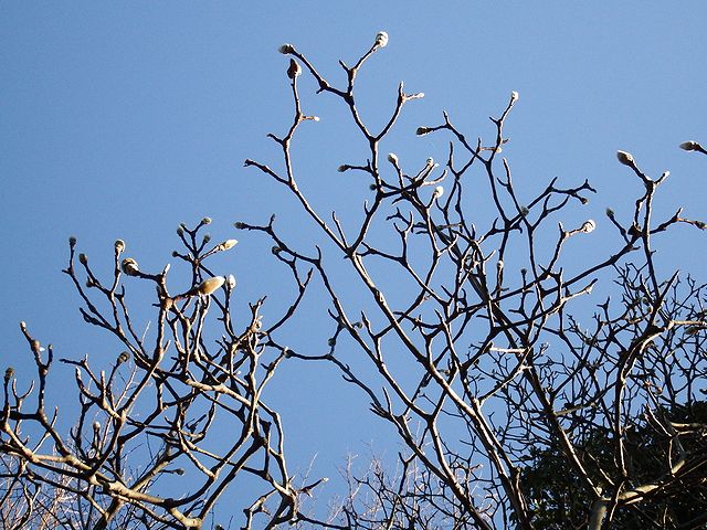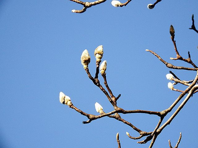 銀白色の毛に覆われた芽麟が印象的な、ハクモクレンの蕾です。