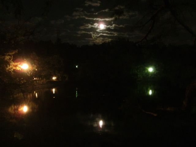 帰宅時に近所の公園を通ると、雲間から美しい満月が顔を覗かせていることに気が付きました。