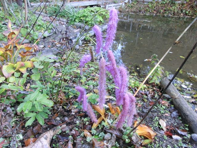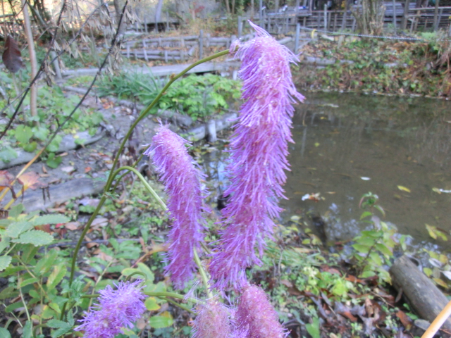 山野草園を通ると、すっかり冬の寂しい様相でしたが、まだ開花している花もありました。