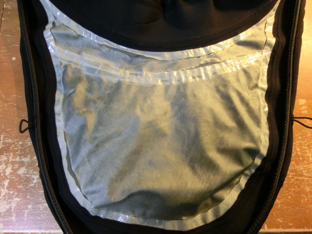 前回と同じ箇所に穴が開き始め、スカート裏地に貼付されていたシームテープも剥離してきたので、モンベルに修理依頼していました。