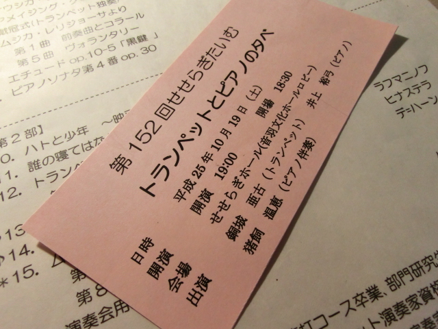 この日は、「トランペットとピアノの夕べ」という演題のプログラムを楽しむことが出来ました。