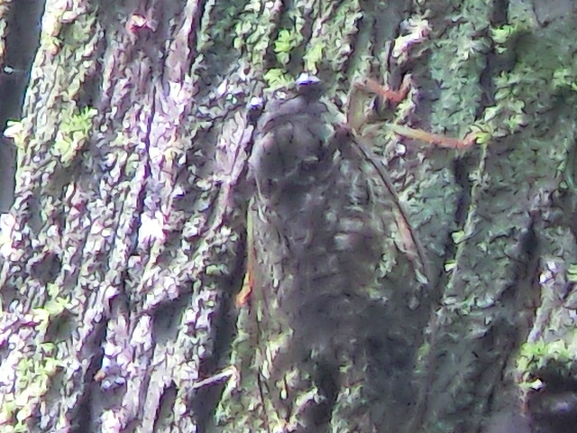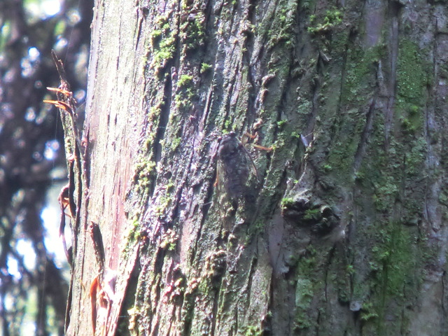 山頂に近づくと、足音に驚きスギ林の幹から飛び立つセミの姿をよく見かけました。